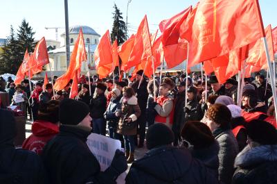 «Хватит грабить народ и кормить олигархов!» – под таким лозунгом 2 марта в Рязани на площади Ленина состоялся митинг, организованный обкомом КПРФ в рамках Всероссийской акции протеста против повышения пенсионного возраста, увеличения тарифов на услуги ЖКХ, резко возросших цен на основные продукты питания, и лекарства, повышения цен на бензин, НДС.