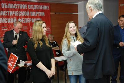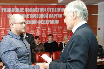 Работа пленума открылась вручением партийных билетов новым членам КПРФ – молодым товарищам из Кораблинского, Октябрьского и Советского районов.
