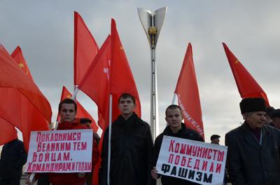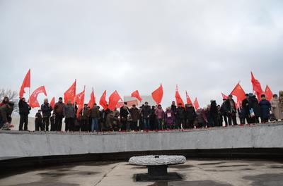 После митинга коммунисты почтили минутой молчания память героев-освободителей и возложили цветы к вечному огню, который перед началом митинга еще горел, а к его окончанию был уже выключен городскими властями.