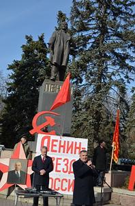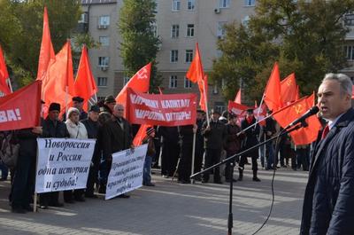 В митинге у памятника В.И. Ленину на Большой Садовой улице донской столицы принял участие и выступил член Президиума, секретарь ЦК КПРФ, первый секретарь Ростовского ОК КПРФ Н.В. Коломейцев. Он поздравил людей с годовщиной Великого Октября и выразил надежду, что, как и 98 лет назад, коммунисты смогут организовать народ и повести за собой к обществу свободы и справедливости. Главной темой всех выступлений было: долой прислужников олигархов, сплотимся вокруг главной цели – установления подлинного народовластия!