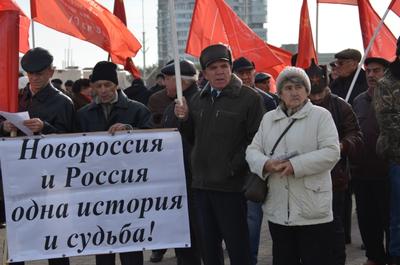 В Ростове колонна демонстрантов прошлаот Театральной площади, где у стелы в честь освободителей города от немецко-фашистских захватчиков состоялся митинг, по улицам города, завершив шествие у парка культуры им. М. Горького.