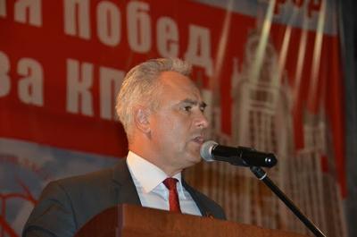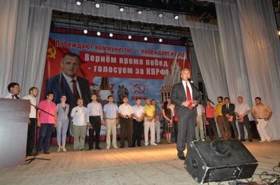 - Так вернем же время побед! - призывает ведущий. – Наш лозунг: «КПРФ, Коломейцев, Победа!».