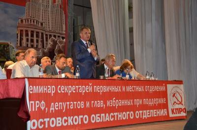 16 августа Ростовский обком КПРФ провел в донской столице во Дворце культуры железнодорожников им. В.И. Ленина семинар-совещание секретарей первичных и местных отделений, депутатов и глав, избранных при поддержке РОО КПРФ. Главная задача форума - нацелить коммунистов на победу в ходе предстоящих выборов губернатора и депутатов представительных органов муниципальных образований Ростовской области.