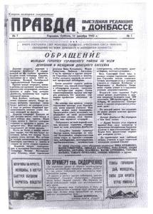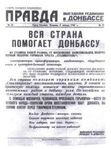 Это ярко подтверждают номера газеты «Правда», изданные выездной редакцией газеты в Донбассе в конце 1943 и начале 1944 года. Текст этих исторических документов подтверждает, что Донбасс – это не собственность олигархов. Его восстанавливала вся наша великая Родина – СССР: