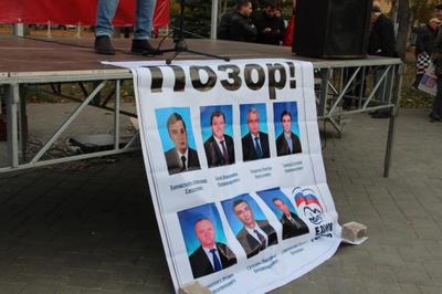 Первый секретарь Новокуйбышевского ГК КПРФ Михаил Абдалкин подчеркнул: «В Государственной Думе сидят депутаты, которые отстаивают интересы олигархических кругов. Посмотрите на фотографии депутатов Государственной Думы фракции «Единая Россия», избравшихся от Самарской области. Они голосовали за повышение пенсионного возраста! Через 2,5 года они придут в наши дворы и попросят избрать их еще на один срок. Что мы им должны сказать в ответ? Пошли вон, единороссы! Долой «Единую Россию» из Государственной Думы!»
