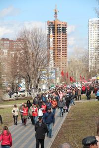 Участники демонстрации прошли по тротуару проспекта Ленина от Ракеты до площади Героев 21 армии.