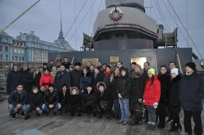 Второй день оказался очень сложным и насыщенным на мероприятия. День для участников слета начался с экскурсии на вернувшийся после ремонта на место своей вечной стоянки крейсер «Аврора». Комсомольцам рассказали об объеме выполненных ремонтных работ и продемонстрировали обновленную музейную экспозицию, которая помимо традиционных экспонатов теперь включает и множество мультимедийных элементов.