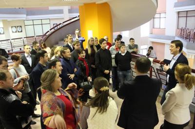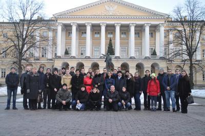 День продолжился экскурсией в Смольный, где в октябре 1917 года работал Штаб революции – Петроградский военно-революционный комитет. Ребята смогли в буквальном смысле прикоснуться к истории, побывав в зале, где проходил II Всероссийский съезд Советов рабочих и солдатских депутатов, и посетив рабочий кабинет В.И. Ленина. По завершении экскурсии делегация комсомольцев возложила цветы к памятнику В.И. Ленину, расположенному у Смольного.