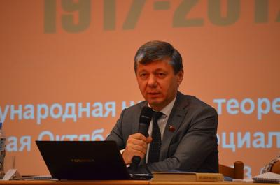 «Международное значение Великого Октября состояло в том, что миру был предложен новый путь развития. В результате – появились страны социалистического выбора, были разрушены колониальные империи, а власти стран капитализма были вынуждены проводить реформы и вводить социальные гарантии. Происходило это под давлением «фактора СССР» и сильных левых движений. Как отмечал в свое время И.В. Сталин: «Даже простой факт существования «большевистского государства» накладывает узду на чёрные силы реакции, облегчая угнетённым классам борьбу за своё освобождение». Иными словами, мир благодаря Октябрьской революции, благодаря Советскому Союзу стал намного справедливее и гуманнее», - рассказал Д.Г. Новиков.