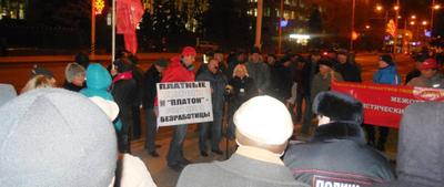 Открыл митинг первый секретарь Саратовского горкома КПРФ А.Ю. Анидалов. В своём выступлении он отметил, что грабительская система поборов "Платон" – незаконный "оброк", назначенный грузоперевозчикам правительством Медведева. Ведь для введения нового налога недостаточно распоряжения Правительства РФ, а требуется принятие специального федерального закона. Также незаконны, по мнению Александра Анидалова и штрафы за неуплату этих поборов.