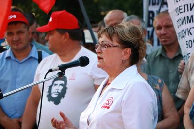 Далее перед собравшимися с яркой, запоминающейся речью выступила первый секретарь Саратовского обкома КПРФ, зампред Саратовской облдумы О.Н. Алимова. Она заявила, что большинство граждан выступает категорически против планов правительства Российской Федерации увеличить возраст выхода на пенсию.