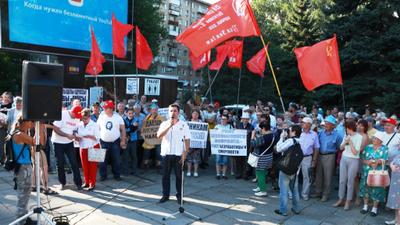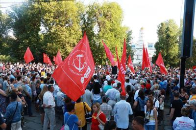 28 июля в Саратове, в рамках всероссийской акции протеста КПРФ, прошёл массовый митинг против повышения пенсионного возраста, роста цен на бензин, а также увеличения тарифов на ЖКУ, ОСАГО и НДС, организованного местным отделением КПРФ.