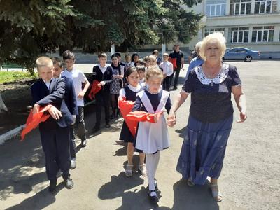 Традиционно пионерская линейка началась с торжественной церемонии вноса знамени под песню «Взвейтесь кострами сини ночи». Ребята с алыми галстуками на груди застыли в приветственном салюте.