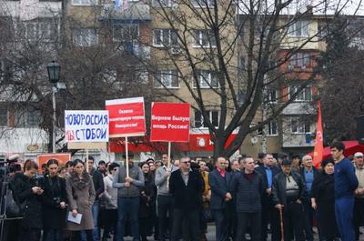 14 марта в 1200 в РСО – Алания, в городе Владикавказ на площади Воссоединения прошел многочисленный митинг в поддержку развития промышленности, сельского хозяйства, поддержку экономических реформ, необходимых России в связи с санкциями Запада, и в поддержку Новороссии.