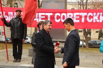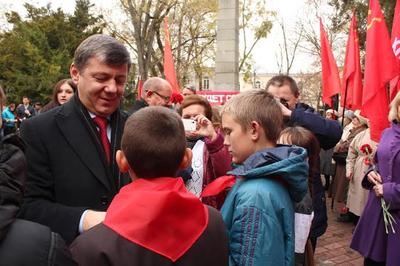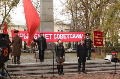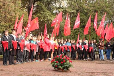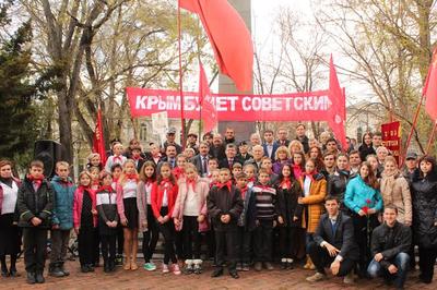 В четверг, 19 ноября, в Комсомольском сквере Симферополя, у обелиска «Павшим за Советскую власть», в рамках Всекрымской молодежной акции «Делу Великого Октября и Знамени Победы верны!» состоялся митинг-концерт, посвящённый 95-й годовщине установления Советской власти в Крыму.