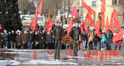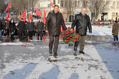 Коммунисты и жители города возложили цветы к подножию памятника В.И.Ленину.