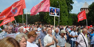 28 июля в городе-герое Смоленске на площади Победы (Смирнова) у кинотеатра «Октябрь» местное отделение Коммунистической партии Российской Федерации провело митинг против повышения пенсионного возраста и за смену социально-экономического курса в России. Принята Резолюция. Собрано 1172 подписи против принятия «людоедского закона», инициированного Правительством Российской Федерации.