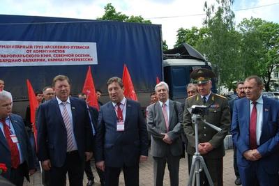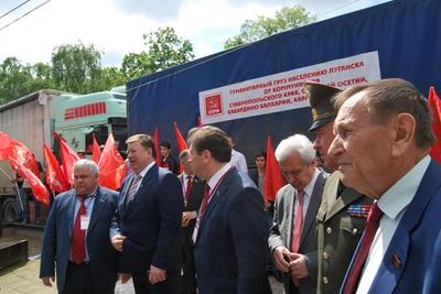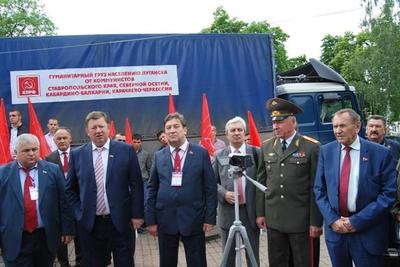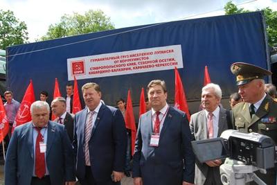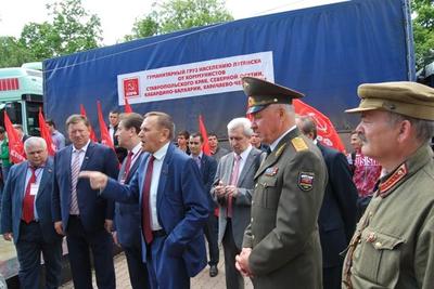 У памятника Лопатину под руководством заместителя Председателя ЦК КПРФ, депутата Госдумы РФ В.И. Кашина состоялась торжественная отправка в Донецкую и Луганскую Народные Республики 55-го гуманитарного конвоя, организация которого в Ставропольском крае по обыкновению легла на плечи двух Викторов Ивановичей – лидера ставропольских коммунистов Гончарова и главы фракции КПРФ в Думе Ставропольского края Лозового. Продукты питания и необходимые вещи передают в Новороссию кроме ставропольских, ещё и северо-осетинские коммунисты и рескомы КПРФ Кабардино-Балкарии и Карачаево-Черкесии. В связи с этим прошёл небольшой митинг, на котором выступили федеральные депутаты-коммунисты В.И. Кашин, К.К. Тайсаев, В.И. Гончаров и краевой депутат И.А. Богачёв. 86-летний знаменитый на всю страну красный председатель поделился с собравшимися тем, что поставил себе задачу «дожить до Cоветской власти». В Ростове к этому гуманитарному конвою присоединятся машины, отправленные Ростовским обкомом КПРФ и Министерством рыбного хозяйства России.