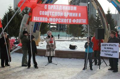 Первый секретарь Тюменского обкома КПРФ Тамара Николаевна Казанцева в своем выступлении поздравила участников митинга с Днем Советской Армии и Военно-Морского Флота. «Сегодня, когда армию Российской Федерации возглавляет Шойгу, произошли некоторые положительные изменения. А вспомните Сердюкова, этого «мастера Табуреткина», который возглавлял армию. Геннадий Андреевич Зюганов постоянно, на всех пленумах ЦК КПРФ говорил о том, кому же мы доверяем обороноспособность нашей страны, и мы видели, кому мы ее доверяем. Мы с вами должны быть патриотами нашей Родины. Мы должны помнить, что если не будет нашей могучей армии, то некому будет защищать нашу великую страну. Я постоянно сожалею, что нет Советского союза, это была та держава, которая была примером для многих, которую боялись. Железный занавес, о котором говорили негативно, я считаю положительным явлением. Потому что у нас не было ни наркотиков, у нас шло развитие промышленности по всем направлениям, мы имели самое лучшее образование в мире. Сегодня открыли все границы, а в результате оказалось разрушено многое», - сказала в своем выступлении Тамара Казанцева. Прямо на митинге она вручила партийный билет Гринько Александру, молодому человеку, который вступил в ряды КПРФ.