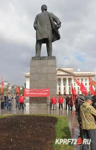 В канун Дня рождения Вождя мирового пролетариата тюменские коммунисты провели памятный митинг у одного из самых крупных монументов Владимира Ильича Ленина в России. Несмотря на дождливую погоду, которая, впрочем, в ходе митинга поменялась на солнечную, десятки коммунистов Тюмени и района собрались для возложения гвоздик к монументу и агитации проходящих в обеденный час граждан за идеи Коммунистической партии, отцом-основателем которой и являлся Владимир Ильич.