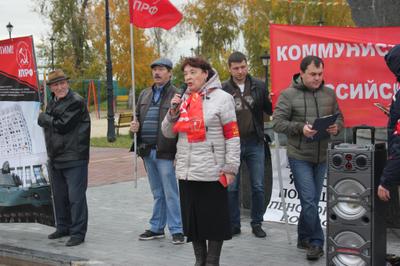 На митинге выступил член бюро обкома Левченко И.Г., который в своем выступлении сказал о том, что сегодня огромные миллиарды вкладываются в строительство и содержание ельцин-центров. Наша партия против такого растранжиривания бюджета России. Стихи собственного сочинения прочитал Сергей Новоселов. Затем слово взял кандидат в депутаты Тюменской областной Думы Княжев Анатолий, который выступает, как правозащитник.