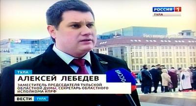 В это время телеканал «Россия 1» взял интервью у секретаря обкома КПРФ и заместителя председателя областной думы Алексея Лебедева.