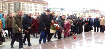 Участники мероприятия почтили память В.И. Ленина минутой молчания и возложили цветы к его памятнику.
