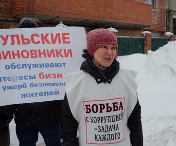 Вот уже несколько лет Марина Толкачева борется за права жителей своей улицы Лескова и против беспредела чиновников, которые, нарушив все строительные и экологические нормы, зарегистрировали четырёхэтажный самострой и вторую канализацию рядом с водопроводной сетью. Марина Толкачева проводила серию одиночных пикетов, в том числе у здания Генеральной прокуратуры в Москве. Ее активная жизненная позиция хорошо знакома жителям Тулы, которые по многочисленным публикациям в СМИ следят за противостоянием жителей улицы Лескова с чиновниками правящей партии. С прошлого лета Марина Толкачёва – активный участник протестных митингов КПРФ против пенсионной и мусорной «реформ».