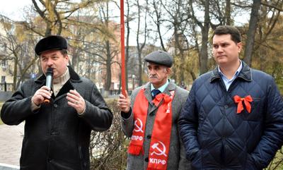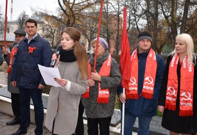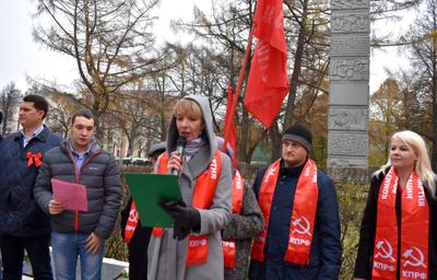 К собравшимся обратился секретарь Тульского обкома КПРФ, руководитель фракции коммунистов в Тульской областной Думе Алексей Лебедев. Он отметил, что нашей революции уже более ста лет, но ее идеи, надежды и свершения остаются современными и актуальными как никогда. Под красными знаменами революции в нашей стране – Советском Союзе – была построена первая в мире атомная станция, первый в мире атомный ледокол, Днепрогэс, Магнитка, Беломоро-Балтийский канал, Байкало-Амурская магистраль и многое другое, за счет чего страна еще держится на плаву. Сегодня, после либеральных реформ, Россия занимает первое место в мире по расслоению общества, по абсолютной убыли населения, первое место в Европе по количеству самоубийств среди детей и подростков. И этот скорбный список можно продолжить…