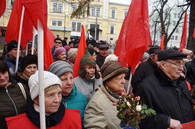 Несмотря на будний день, митинг в честь 101-ой годовщины Великой Октябрьской социалистической революции собрал в Сквере Коммунаров значительное количество коммунистов и сторонников социалистических идей.