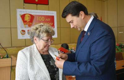 Большой группе ветеранов комсомола Олег Лебеде вручил памятную медаль «100 лет ВЛКСМ».