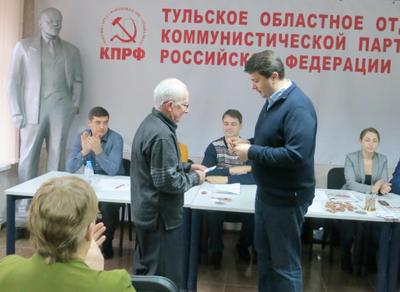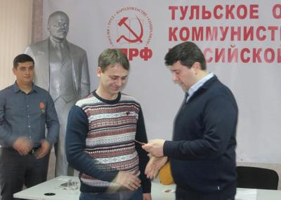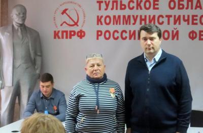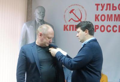 Депутат Государственной Думы, первый секретарь Тульского обкома КПРФ Олег Лебедев вручил членам депутатского корпуса от КПРФ памятные медали ЦК КПРФ «В ознаменование 140-летия со дня рождения И.В. Сталина».