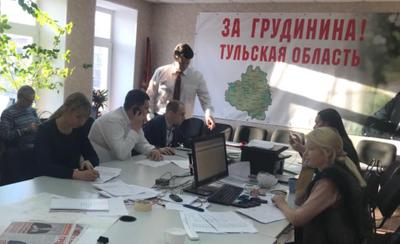 Секретари Тульского обкома КПРФ инспектируют участковые избирательные комиссии. А в самом обкоме работает оперативный штаб, куда стекается информация от наблюдателей.