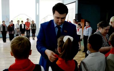 В школах Тульской области широко и торжественно прошли мероприятия по приему в пионеры учащихся средних школ. В средней школе № 19 красные галстуки новым членам детской коммунистической организации повязал первый секретарь Тульского обкома КПРФ, депутат Госдумы Олег Лебедев.