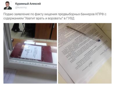 Но, увы, кто-то из местных деятелей счёл необходимым похитить агитационные материалы кандидата в губернаторы Ульяновской области Алексея Куринного.