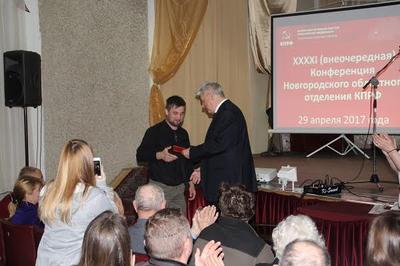 29 апреля в ДК им. Н.Г. Васильева состоялась ХХХХI(внеочередная) Конференция Новгородскогообластного отделения КПРФ. Перед началом мероприятия прошло торжественное вручение партийных билетов новым членам партии. Затем перед собравшимися с отчетным докладом Комитета Новгородского областного отделения КПРФ выступил первый секретарь Новгородского обкома В.Ф.Гайдым.Он рассказал партийцам о проделаннойработе за период с мая 2016 года по апрель 2017 года.