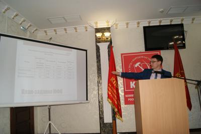 С большим докладом о работе депутатской вертикали в Волгоградской области выступил секретарь Сталинградского обкома КПРФ Олег Дмитриев.