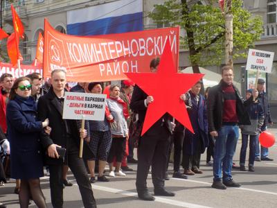 Видневшиеся тут и там на плакатах призывы и лозунги ЦК КПРФ ко Дню международной солидарности трудящихся как в зеркале отразили настроение трудового Воронежского региона.