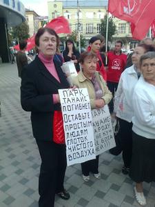 С просьбой помочь остановить застройку известного всем парка «Танаис» к присутствующим на митинге обратилась руководитель инициативной группы из Советского района Воронежа.