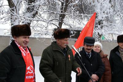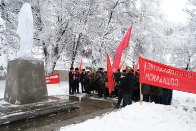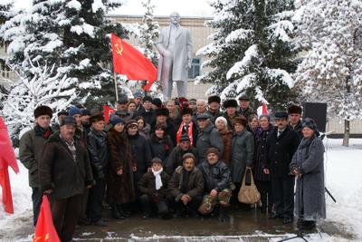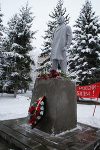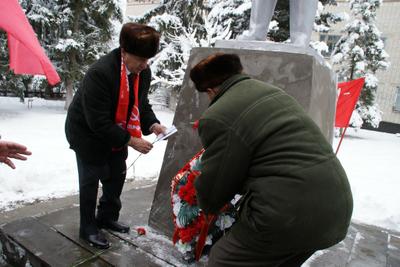 К подножию памятника вождю легли цветы и венок, звучали речи, поздравления, в том числе и с наступающим Новым годом, завершили митинг гимн Советского Союза и общее фотографирование с Лениным.