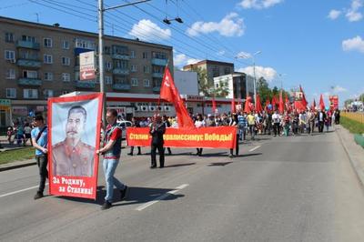 В первых рядах Сталинского марша шли ветераны войны и труженики тыла. За ними секретари обкома КПРФ Георгий Камнев, Владимир Симагин и Олег Шаляпин. Традиционно к коммунистической колонне в День Победы присоединилось и много молодёжи – школьники, студенты, молодые мамы с детьми.