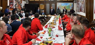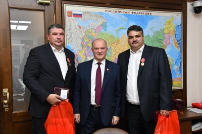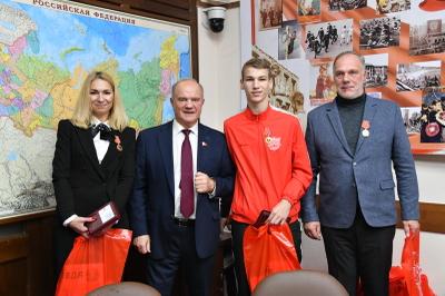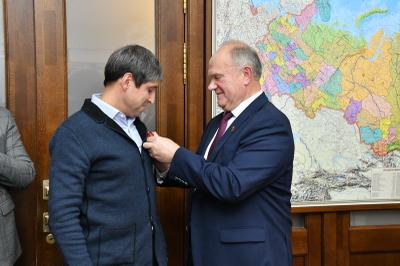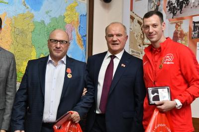 «Спортивный клуб КПРФ по мини-футболу добился больших успехов на престижных соревнованиях, игроки нашего клуба представлены в сборной России. Мы гордимся вами», - поблагодарил футболистов лидер КПРФ и вручил им памятные ордена ЦК КПРФ «100 Ленинскому комсомолу». В числе награжденных не только футболисты, но также тренеры и активные болельщики команды.