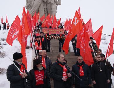 От имени первого секретаря Сталинградского обкома КПРФ Николая Паршина и депутата Государственной Думы Алевтины Апариной участников митинга поздравил с праздником секретарь обкома КПРФ Андрей Беляевсков: «Самая главная задача, которую сталинградские коммунисты поставили перед собой - это вернуть городу имя Сталинград. В минувший понедельник они передали часть подписей в приемную президента, в скором времени подписи за возвращение городу его исторического имени поступят также из других областей нашей Родины. Мы искренне надеемся, что имя Сталинград все-таки будет сиять на картах всего мира».