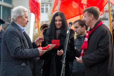 Также на митинге нескольким краснодарцам были вручены партийные и комсомольские билеты, а в завершение акции единогласно была принята Резолюция. Ее проект озвучил Александр Сафронов — член Краснодарского крайкома КПРФ.