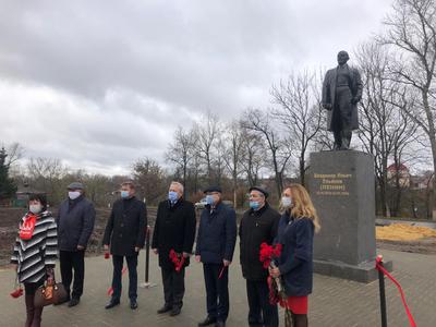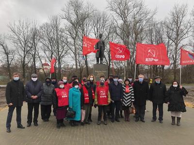 По завершении мероприятия к подножию памятника В.И.Ленина собравшиеся возложили цветы и сделали общее фото.