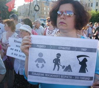 И организаторы, и рядовые участники акции протеста на Театральной площади говорили не только о проблеме конкретной реформы пенсионного обеспечения граждан, – они рассматривали повышение пенсионного возраста как частный случай антисоциальной политики властей. «Голосовал за Путина? Иди на пенсию в 63-65 лет!», «Антинародное правительство либералов – в отставку!», «Требуем справедливого распределения доходов!», «Президент! «Где обещанные 25 млн. новых рабочих мест?». Именно с такими плакатами вышли участники акции протеста, которая по праву может считаться самой массовой с начала 2018 года. Участники акции протеста вспоминали и фальсификацию выборов, и увеличение НДС, и повышение цен на бензин. Говорили много и о причинах принятия антисоциальных законов.