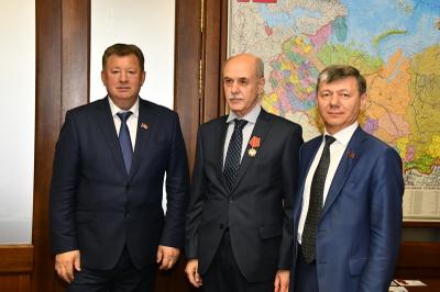 19 ноября во фракции КПРФ в Государственной Думе состоялось награждение медалью ЦК КПРФ «100 лет Великого Октября» членов Фонда памяти полководцев Победы. Вручили юбилейные награды заместители Председателя ЦК КПРФ В.И. Кашин и Д.Г. Новиков.