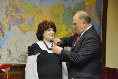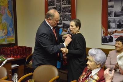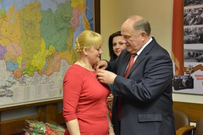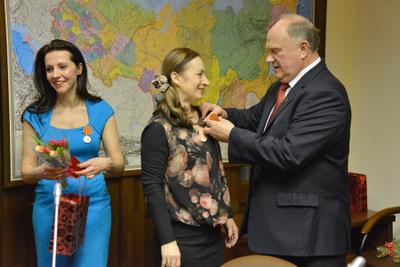 Лидер КПРФ вручил активистам женского движения памятные медали ЦК КПРФ «70 лет Победы». В числе награжденных председатель правления ООД ВЖС «Надежда России», депутат Госдумы Т.В. Плетнева.