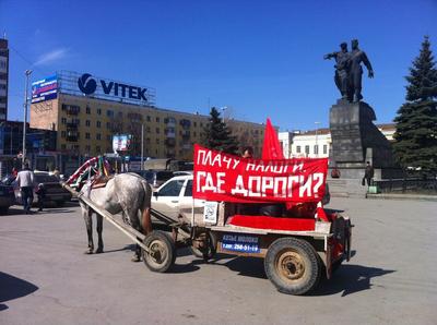 В канун дня рождения В.И. Ленина в Екатеринбурге коммунисты организовали два пробега: автомобильный и конный