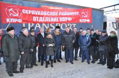Также в ходе отправки груза выступили руководитель Штаба ЦК КПРФ по оказанию помощи жителям Юго-Востока Украины Казбек Тайсаев, секретарь МГК КПРФ Владимир Родин, директор ЗАО «Совхоз им. Ленина» Павел Грудинин, первый секретарь Серпуховского РК КПРФ Михаил Волков.